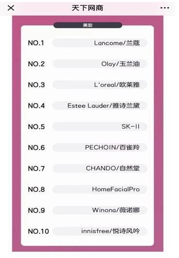 (一) 2018年天猫双十一销售榜单揭晓,美妆外资品牌占据前三位