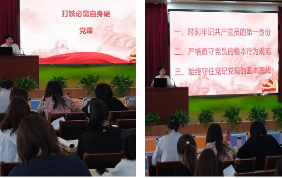 10月8日,我校党支部按照计划举办了“不忘初心 牢记使命”党课活动。张凤霞书记亲自上课,题为“打铁必需自身硬”---树起新时代合格党员的旗帜与标杆。从时刻牢记共产党员的第一身份、严格遵守党员的根本行为规范、始终守住党纪党规的基本底线三方面,对党员提出更严格的要求。