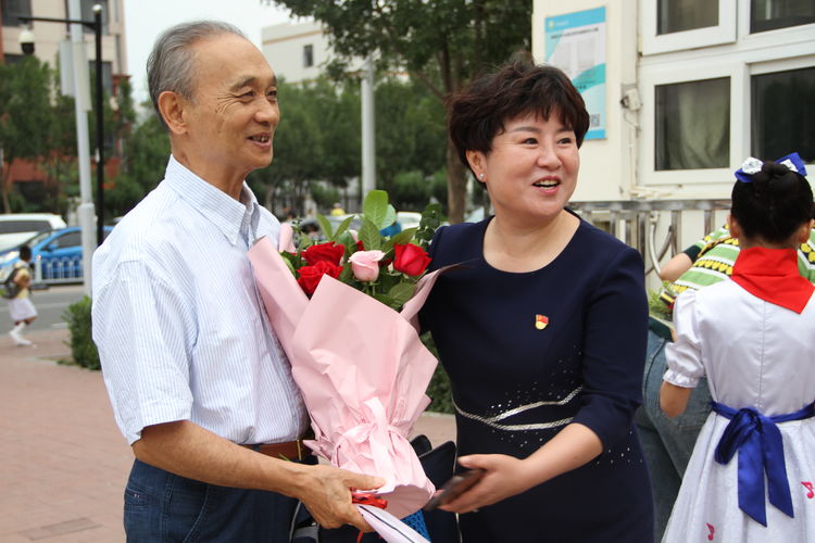 东方既白,张凤霞校长便守候在校门口,和可爱的学生们为入校的教师送上鲜花和节日的祝福。学生代表还为张校长、刘亚娟老师送上饱含心意的节日礼物。同时张校长为受邀而来的谢大光先生送花并表示感谢,感谢谢先生为咸六小人文培养所做的贡献。