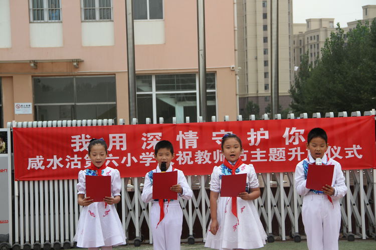 我用深情守护你,这是每一位教书育人者工作日常的真实写照。“你”是我们日夜坚守的三尺讲台、是我们矢志不渝的教育事业、是我们专长研究的教育教学实践、更是我们用心教导朝夕相处的学生、是我们对往昔的回顾对未来的期盼。在这个天朗气清的初秋,我们迎来了第35个教师节,在这个属于“祖国园丁”的节日里,咸六小的师生用自己的行动为教师节渲染上了最明艳的色彩。