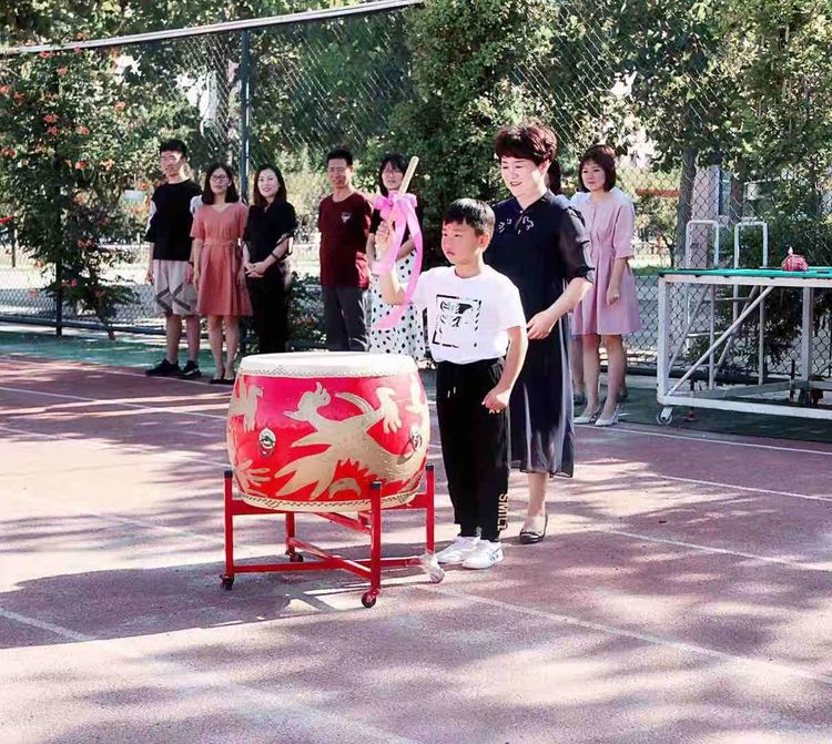 第三篇章击鼓鸣志部分,张凤霞校长和一年级新生代表分别击鼓三声,鼓声响彻云霄、激荡人心。