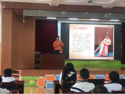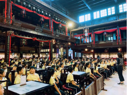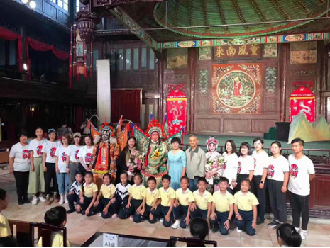 四年级学生社会实践课程的路线是平津战役纪念馆和广东会馆,在游览前,全体四年级学生一起在音乐老师的讲解下了解了广东会馆的历史及即将观看的三出折子戏的知识,音乐教师还为孩子们介绍了三出折子戏的主要演员。