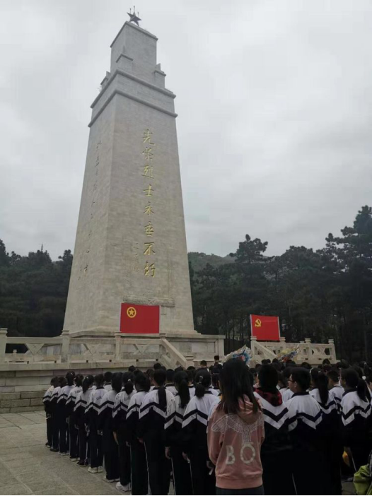 五六年级的孩子们来到了盘山烈士陵园,瞻仰革命烈士纪念碑,聆听先烈事迹,并献花寄托哀思。