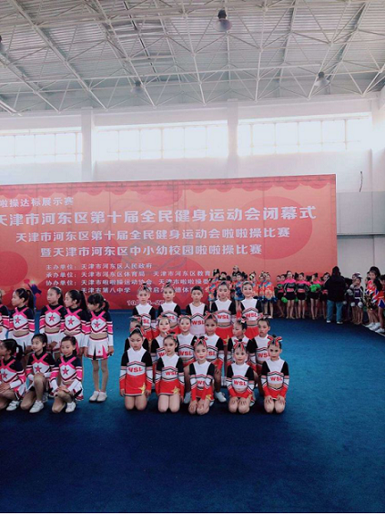 同日,我校啦啦操队的小运动员们参加天津市啦啦操达标展示赛,并取得规定花球组第四名的好成绩。